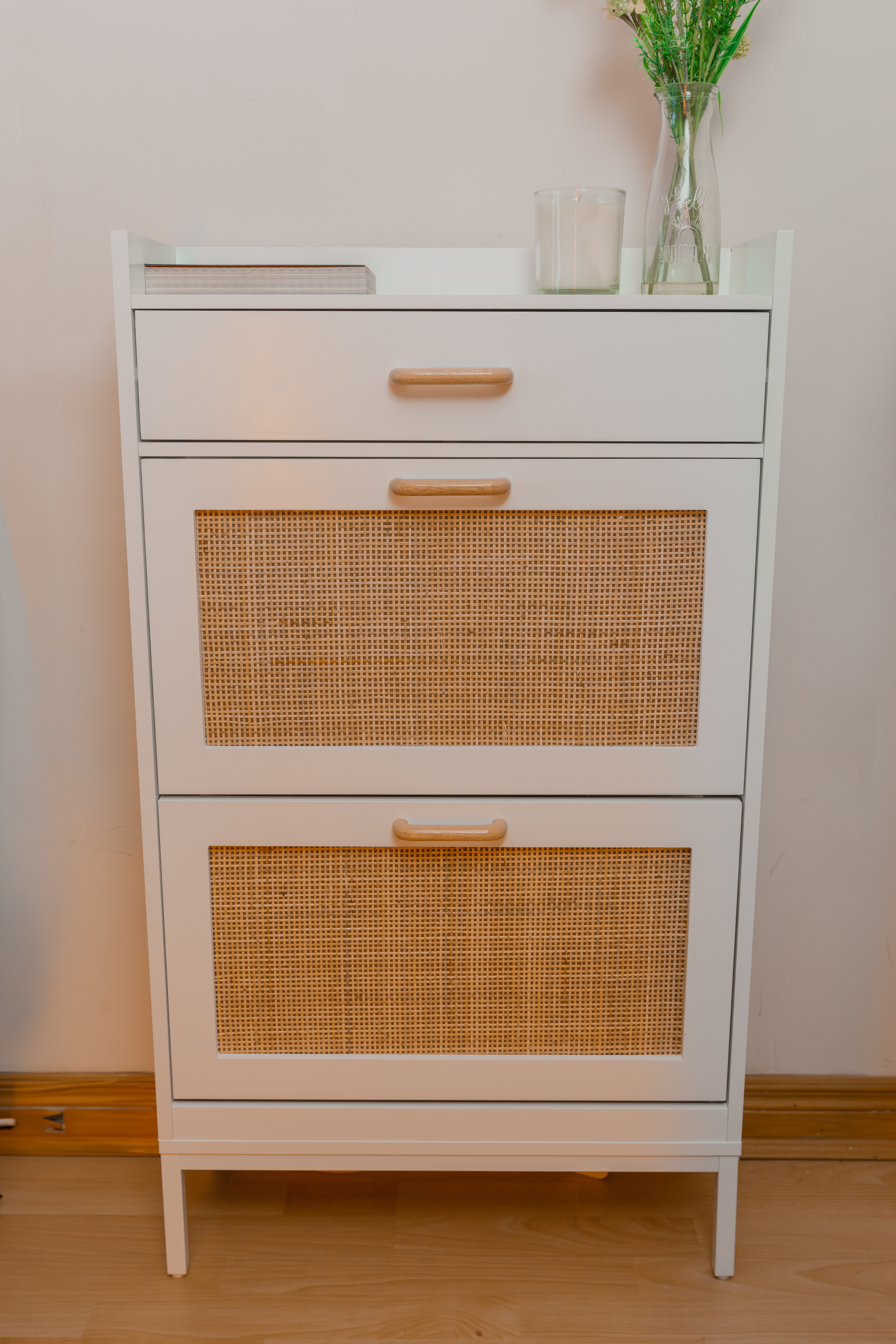 Looking to keep your entryway neat and tidy? We have found you the perfect solution. Made from high quality materials, this space-saving cabinet is both esthetic and functional. Let us help you stay organized without sacrificing style.